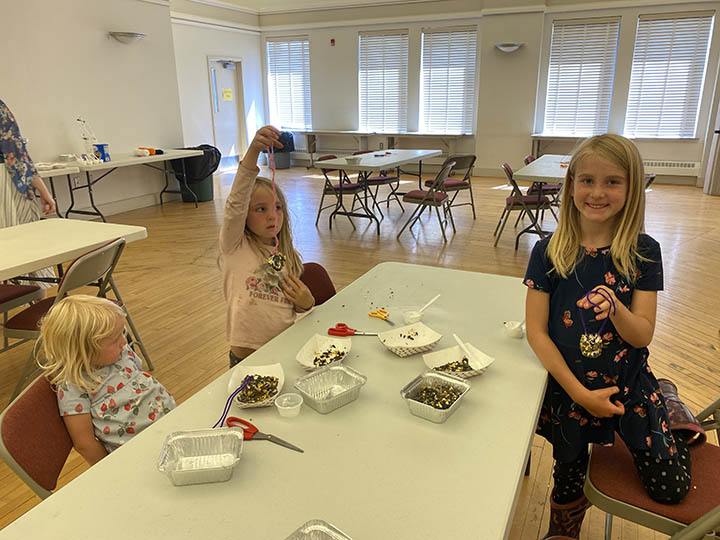 News Photos by Darby Hinkley Children enjoyed making Critter Feeders on Wednesday afternoon at Alpena County Library. Pictured, from left, are Aria Sager, 2, Adaline Sager, 5, and Aurora Sager, 7.