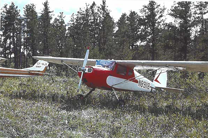 Courtesy Photo William Kelley’s airplane is seen tied down near a grassy airstrip in Hudson Bay, Saskatchewan in 1971.