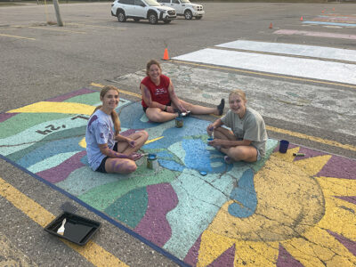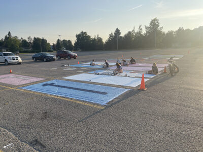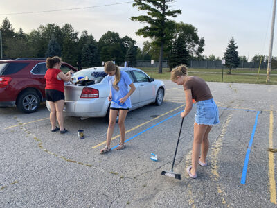 Alpena High seniors get creative and paint parking spots before classes begin