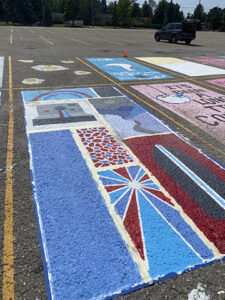 News Photo by Torianna Marasco Myah’s parking spot is seen drying on Tuesday. With each section blocked off, the design portrays several of Myah’s favorite things.