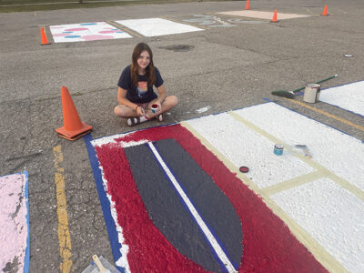 Courtesy Photo A senior at Alpena High paints her parking spot.