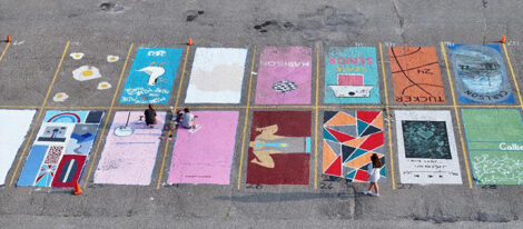 Courtesy Photo Myah and her friend, Aili Lee, paint their parking spots which they chose to be next to each other. Myah planned an array of ideas for a collage, while Lee decided to draw inspiration from her job as a server.
