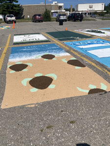 News Photo by Torianna Marasco A senior’s parking spot is seen painted with turtles on the beach on Tuesday.