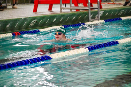 One of the highlights of the meet was sophomore swimmer Elizabeth Rabbideau having her personal best time in the 50 Yard Freestyle, 500 Yard Freestyle, 200 Yard Medley Relay, and 400 Yard Freestyle Relay.