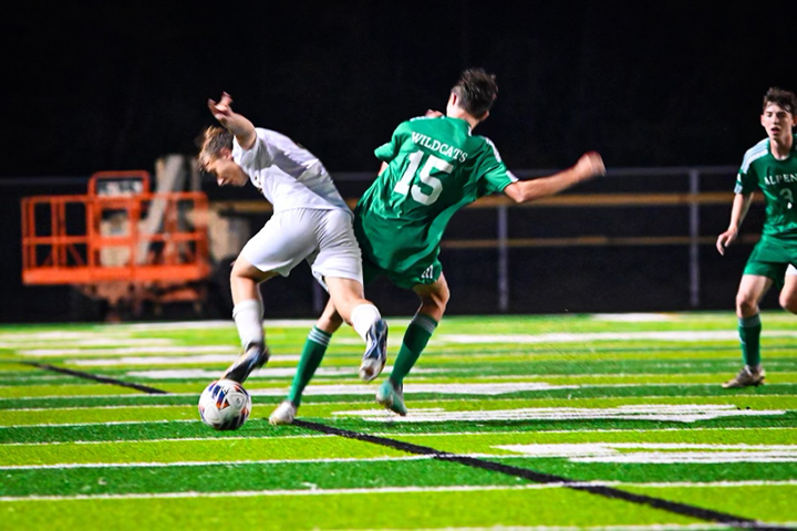 - News Photo by Leslianne Johns Alpena’s Owen Kaiser attempts to steal the ball from a player from Cadillac in Tuesday night’s game in Alpena. The Wildcats took home the win with a final score of 1-0.