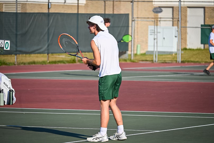 News Photo by Leslianne Johns Austin Derosia stands ready for a tennis match on Thursday in Alpena. AHS lost 8-0 in the matchup against Cadillac.