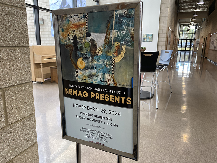 - News Photo by Torianna Marasco The poster showcasing the Northeast Michigan Artist Guild exhibit at Alpena Community College is seen at the gallery entrance on Wednesday. The exhibit can be seen in the Fine Arts Center through Nov. 29.