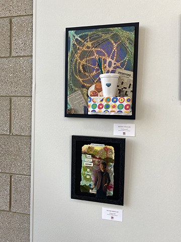 News Photo by Torianna Marasco Found-object collage artworks are seen at the Northeast Michigan Artist Guild exhibit at Alpena Community College on Wednesday.