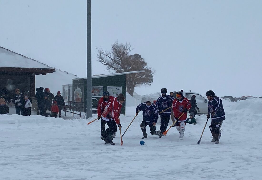 NewNews Photo by Darby Hinkley The Alpena Police and Alpena Fire departments play in a broomball game on the ice on Saturday at Mich-e-ke-wis Park during the Alpena Ice Festival. The police team emerged victorious, beating the fire team 5 to 2, but it was a friendly game and fun for participants and spectators.