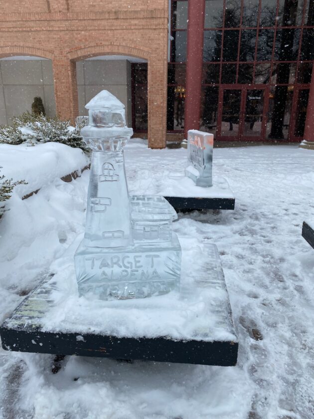 - News Photo by Darby Hinkley A lighthouse ice sculpture, sponsored by Target Alpena, is seen on Saturday at Culligan Plaza during the Alpena Ice Festival.
