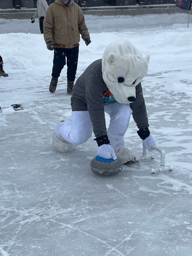 - Courtesy Photo In this photo provided by Diane O’Connor, a polar bear learns to curl on the ice at Mich-e-ke-wis Park during the Alpena Ice Festival. Thunder Bay Curling Club offered the opportunity for attendees to try their hand at curling.