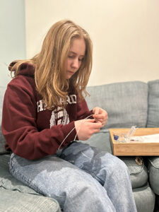 Courtesy Photo Emma Schroeder works on a piece of jewelry in this undated photo. Schroder makes necklaces, bracelets, and earrings out of wire and rocks to create custom-made accessories.