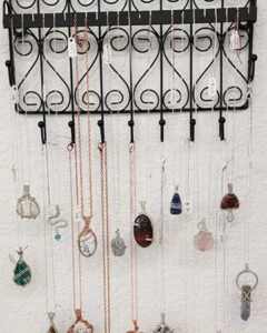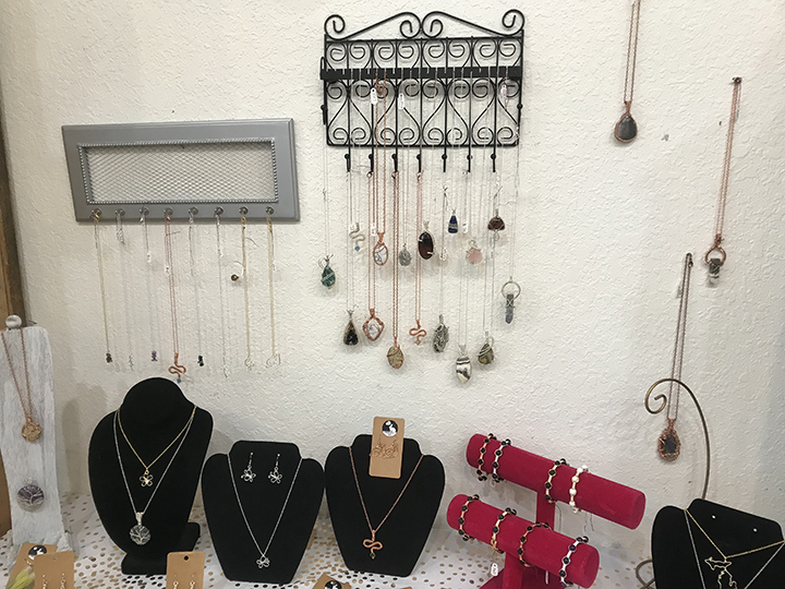 News Photo by Shell Hoffman Emma Schroeder’s custom, wire necklace is seen at Hollyhock Emporium of Harrisville.