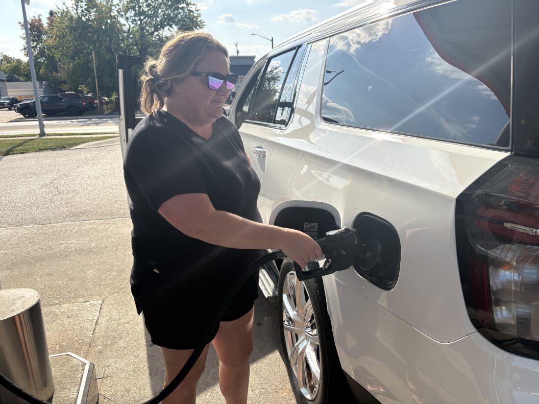 News Photo by Kayla Wikaryasz On Friday, Chelsea Leeck-Putkamer is seen pumping gas at the Shell gas station on Chisholm Street. People will be taxed differently for gasoline after some changes to the state budget which was passed early on Friday