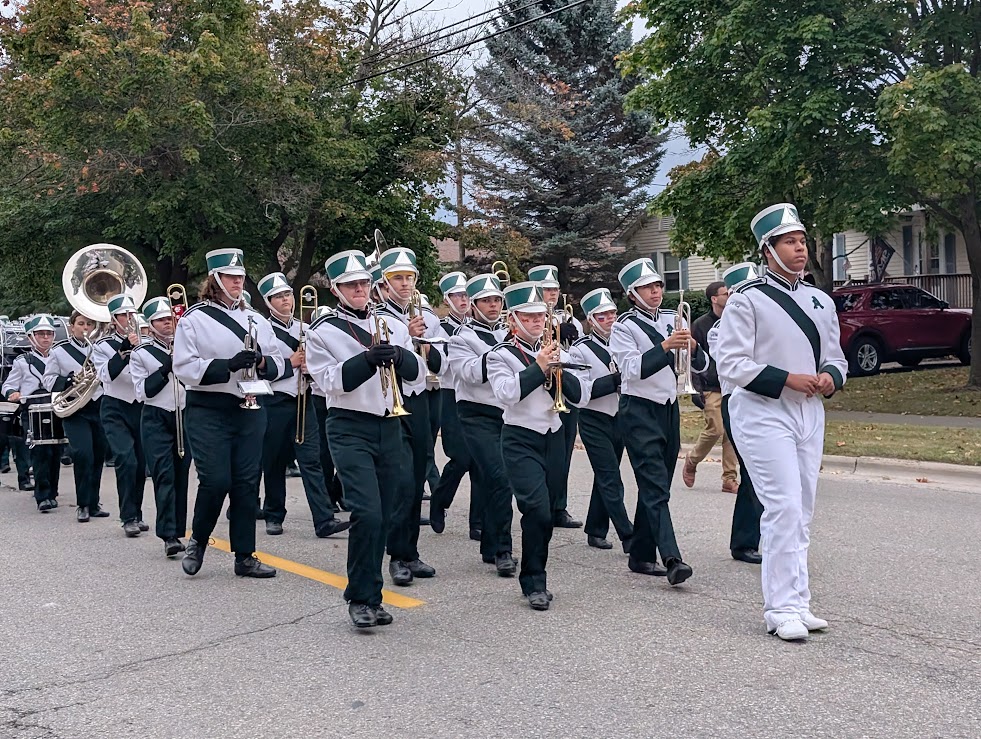 News Photo by Reagan Voetberg The Alpena High School marching band marches by in the homecoming parade on Friday.