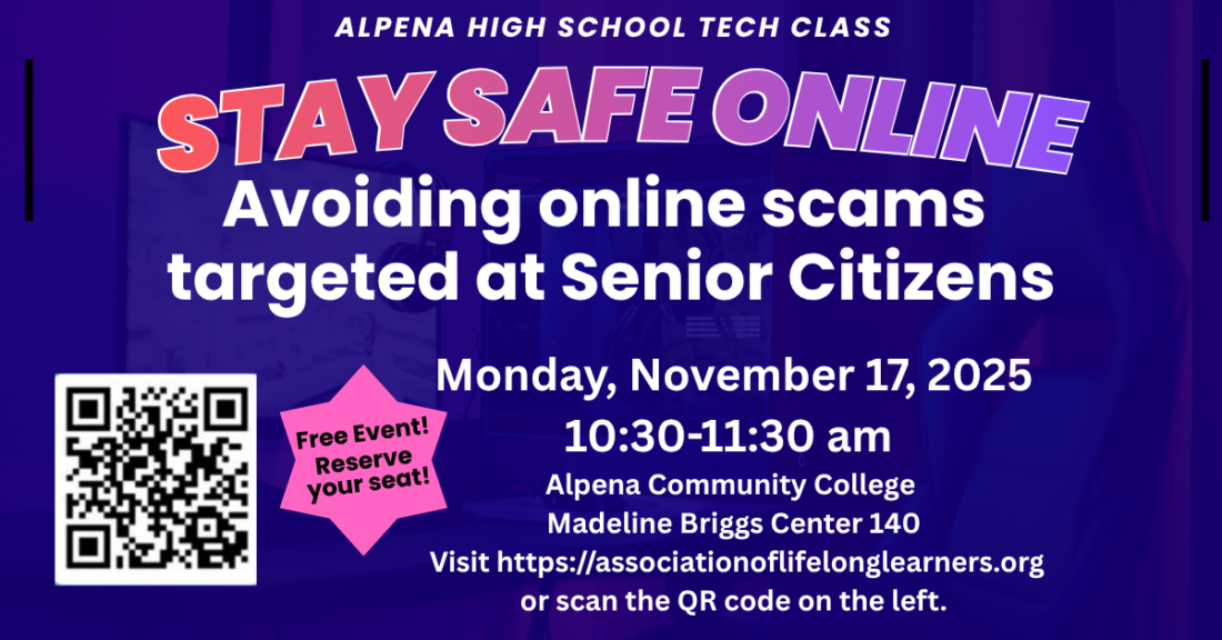 Join an eye-opening community event designed to help you recognize, avoid, and report scams that target seniors, taking place at 10:30 to 11:30 a.m. next Monday in the Alpena Community College Madeline Briggs Center, room 140. The event will be hosted by Officer Jason Collegnon, Alpena High School Liaison Officer and Alpena High School Technology students.