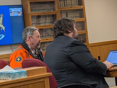 News Photo by Reagan Voetberg Douglas Smith and Attorney Christopher Parks are pictured in the 26th Circuit Court in Montmorency County on Monday.