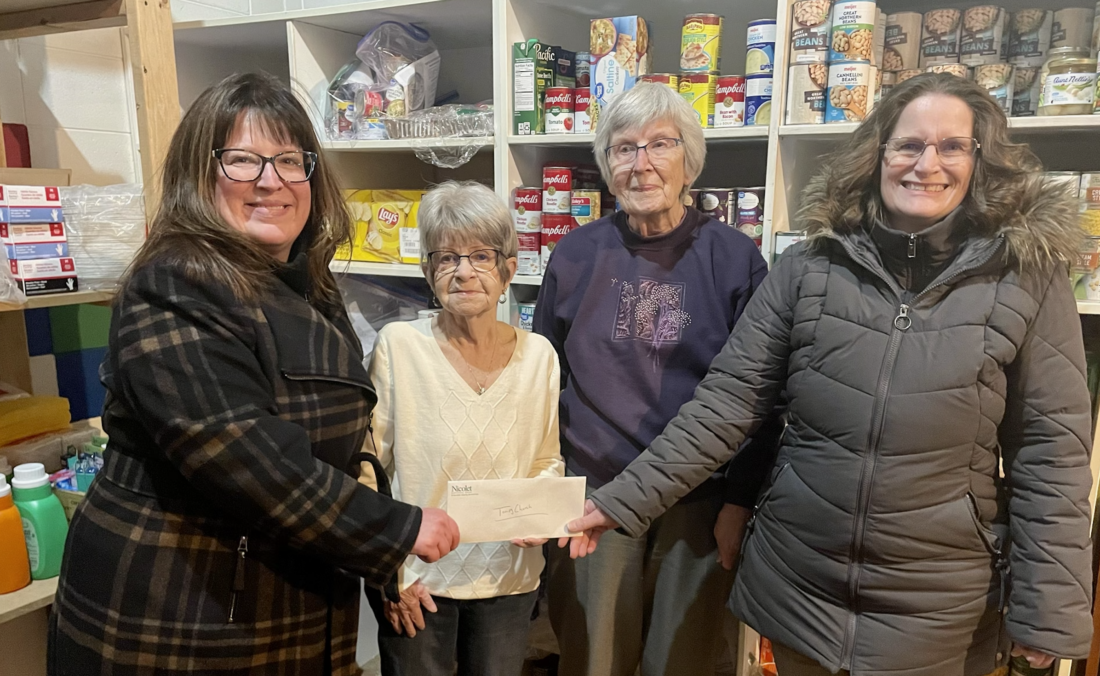 Nicolet Bank presented a check to the Trinity Episcopal Church for its Sunday suppers and the Trinity Food Pantry. Pictured are Rissa Leesberg, Marge Lakin, and Cynthia Taylor, and Ann Marie Smith.