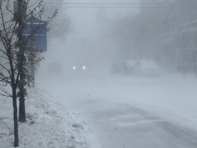 News file photo Only the headlights are visible through blowing snow in downtown Alpena during a snowstorm last year.