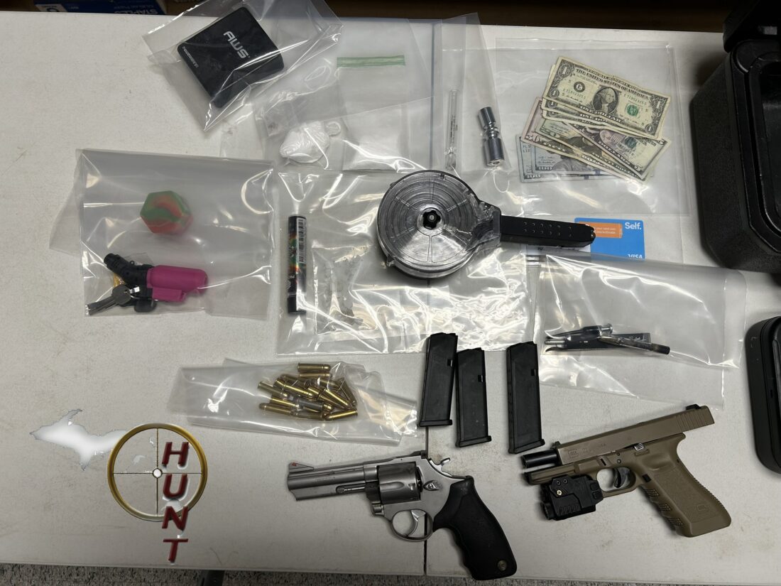 A traffic stop was conducted on U.S.-23 in Alpena County. A probable cause search of the vehicle was conducted, and detectives located two locked safes along with drug paraphernalia. Follow-up search warrants were executed on the two safes and located 28.6 grams of cocaine, 5.8 grams of crack cocaine, a handgun, a revolver, and cash.