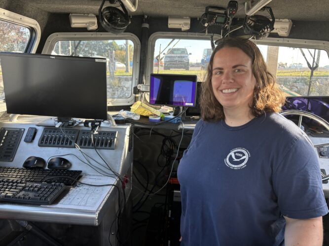 ALPENA — Melissa Weber, a hydrographer with NOAA’s Great Lakes Environmental Research Laboratory (GLERL), has helped map over 2,000 linear nautical miles of the Thunder Bay National Marine Sanctuary (TBNMS) this summer.