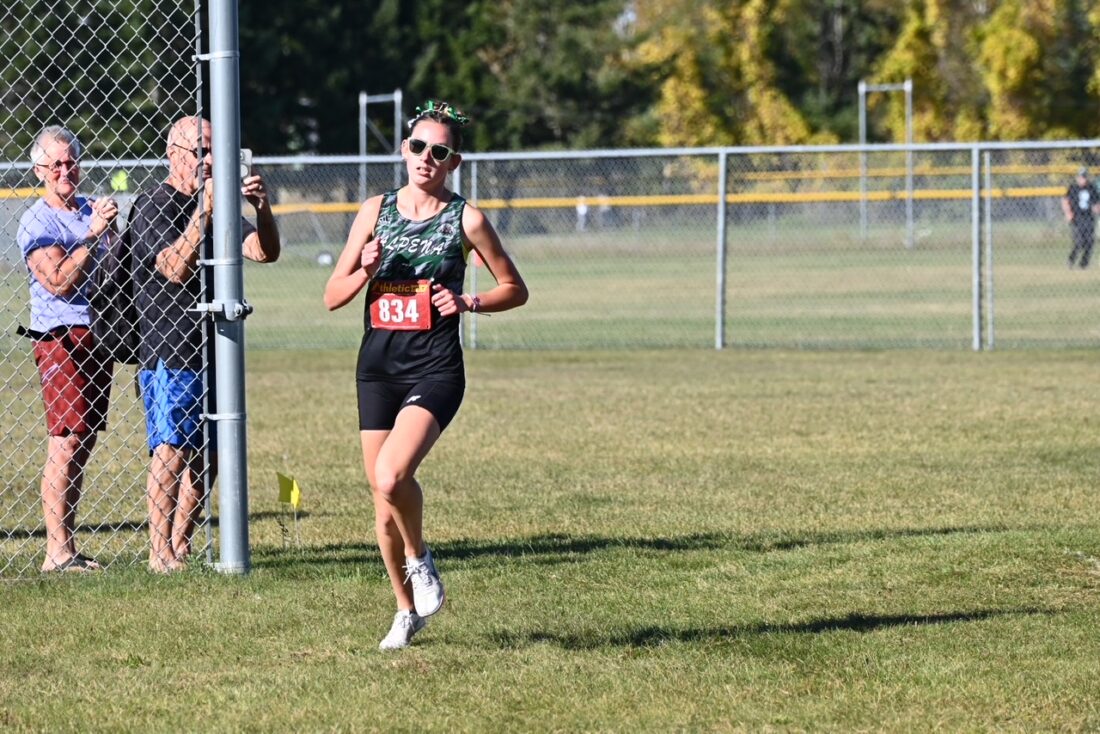 - News Photo by Leslianne Johns Senior Izzy Szymanski was the first-place female finisher in Tuesday’s inaugural home meet at Alpena’s new cross country course.