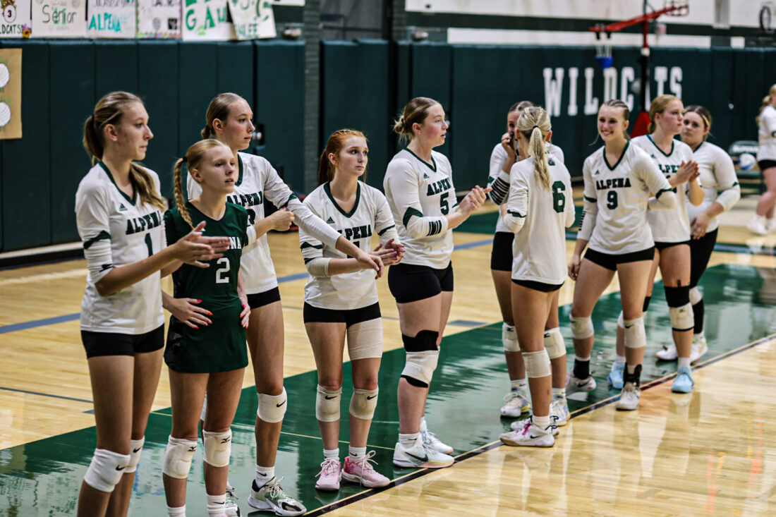 Courtesy Photo The Alpena High School volleyball team lines up in the gym at the high school during a match. Several of the players received honors this week.