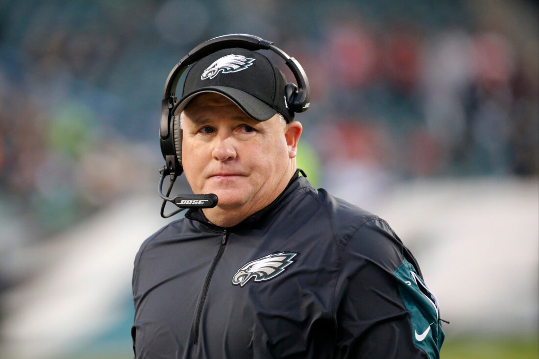 FILE - Philadelphia Eagles head coach Chip Kelly walks the sidelines during the second half of an NFL football game against the Tampa Bay Buccaneers, Sunday, Nov. 22, 2015, in Philadelphia. (AP Photo/Julio Cortez, File)