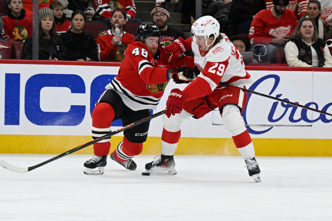 Alex DeBrincat scores twice as Red Wings shut out Blackhawks 4-0