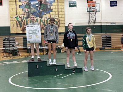 The girls wrestled on Sunday at Grayling’s Girls Individual Tournament earning an eighth- place finish in the team standings out of 30 teams despite only having six girls in the competition.