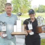 News Photo by James Andersen Tom Lahner, left, and Courtney Nunneley took top honors on Sunday after the final round of the 50th annual City Open at Alpena Golf Club. Lahner earned his third City Open title in four years, separating himself from the pack for a five stroke victory. Nunneley won the City Open in her first time playing and became one of the tournament's youngest winners at 17 years old.