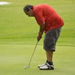 - News Photo by James Andersen John Hoos putts on the 18th green during the final round of the City Open on Sunday at Alpena Golf Club.