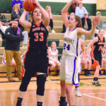 - News Photo by Jonny Zawacki Rogers City’s Taylor Fleming (33) scores underneath the hoop while being defended by Frankfort’s Abby Hodge (24).