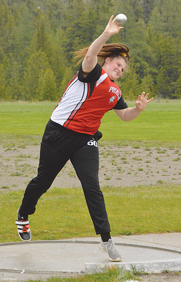 Shot Put–1. Faith Weide, Alpena, 38-0 1/2; 2. Brittany Mischloney, Alpena, 30-6 1/4; 3. Madison Menzel, Posen, 27-9; 4. Shawna McDonald, Rogers City, 26-11 1/2; 5. Madison Timmreck, Alpena, 26-10; 6. Gretchen Ford, Fairview, 25-5; 7. Alicia Ballor, Alpena, 24-11; 8. Sophie Romel, Posen, 24-2.