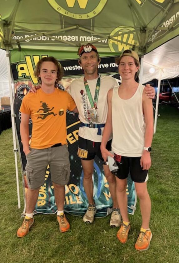 Courtesy Photo Ryan “Stormy” Knight of Alpena, completed the 2022 Burning River 100 Mile Trail race held in Cuyahoga Falls, Ohio. The race travels through several of the region’s most scenic areas, including the Cuyahoga Valley National Park and the Summit Metro Parks. Knight’s time for the race was 25:13.21 and was his sixth completed 100 mile race. Ryan “Stormy” Knight (center) celebrates finishing the Burning River 100 mile trail race with crew members Calvin Hibbler and Kenan Knight in this photo.