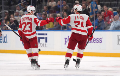 ST. LOUIS (AP) — Dylan Larkin scored twice and Alex DeBrincat also scored to help the Detroit Red Wings beat the St. Louis Blues 5-2 on Tuesday night.