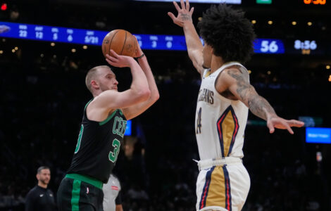 BOSTON (AP) — Sam Hauser had 24 points on eight 3-pointers, and the Boston Celtics tied the franchise and NBA record with 29 3s on their way to clinching the Eastern Conference's No. 2 playoff seed with a 144-118 win over the New Orleans Pelicans on ...