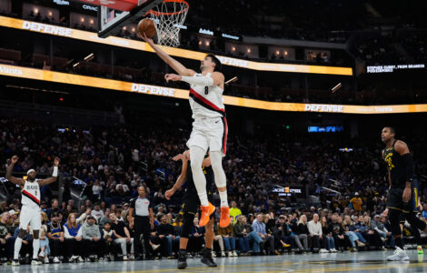 SAN FRANCISCO (AP) — Deni Avdija had 26 points, a career-high 14 assists and six rebounds as the Portland Trail Blazers held off the Golden State Warriors 127-123 in the NBA Cup on Friday night.