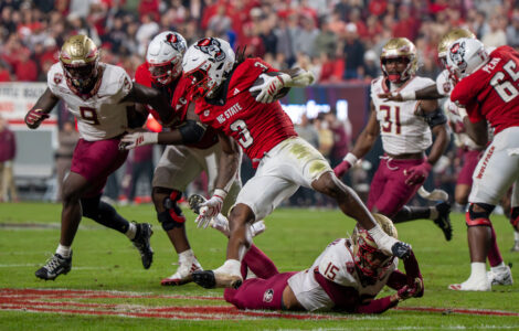 RALEIGH, N.C. (AP) — Justin Joly had a clinching fourth-down touchdown catch with 1:47 left — coming after Florida State committed turnovers on back-to-back late punt returns — to help N.C. State hang for a 21-11 win Friday night and become bowl ...