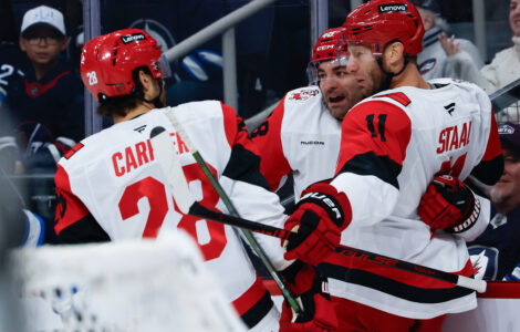 WINNIPEG, Manitoba (AP) — Jordan Staal scored twice and the Carolina Hurricanes beat Winnipeg 4-3 on Friday night in the Jets' first game since learning star goalie Connor Hellebuyck will be sidelined four to six weeks.