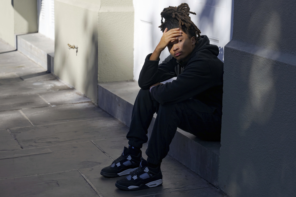 Trevant Hayes, 20, sits in the French Quarter after the death of his friend, Nikyra Dedeaux, 18, after a pickup truck crashed into pedestrians on Bourbon Street followed by a shooting in the French Quarter in New Orleans, Wednesday, Jan. 1, 2025. (AP Photo/Matthew Hinton)